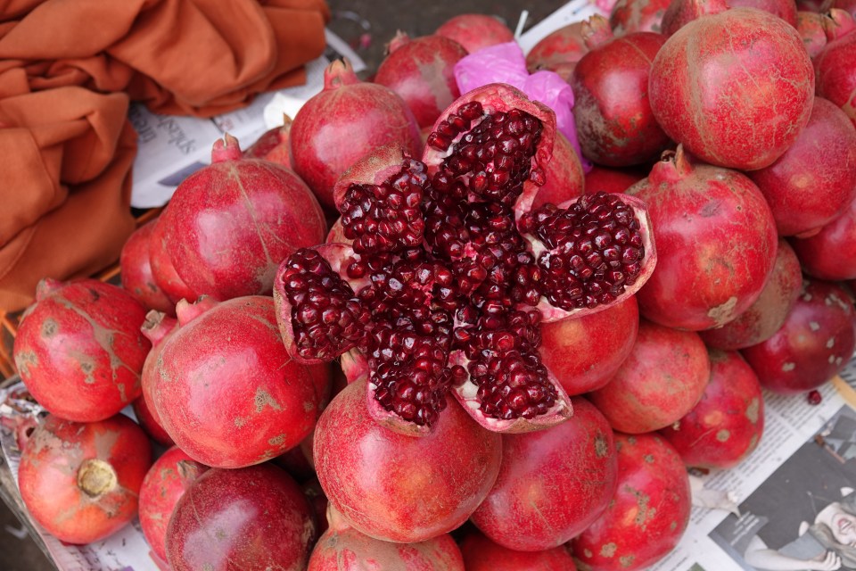 Fresh pomegranate. City Market, Bangalore